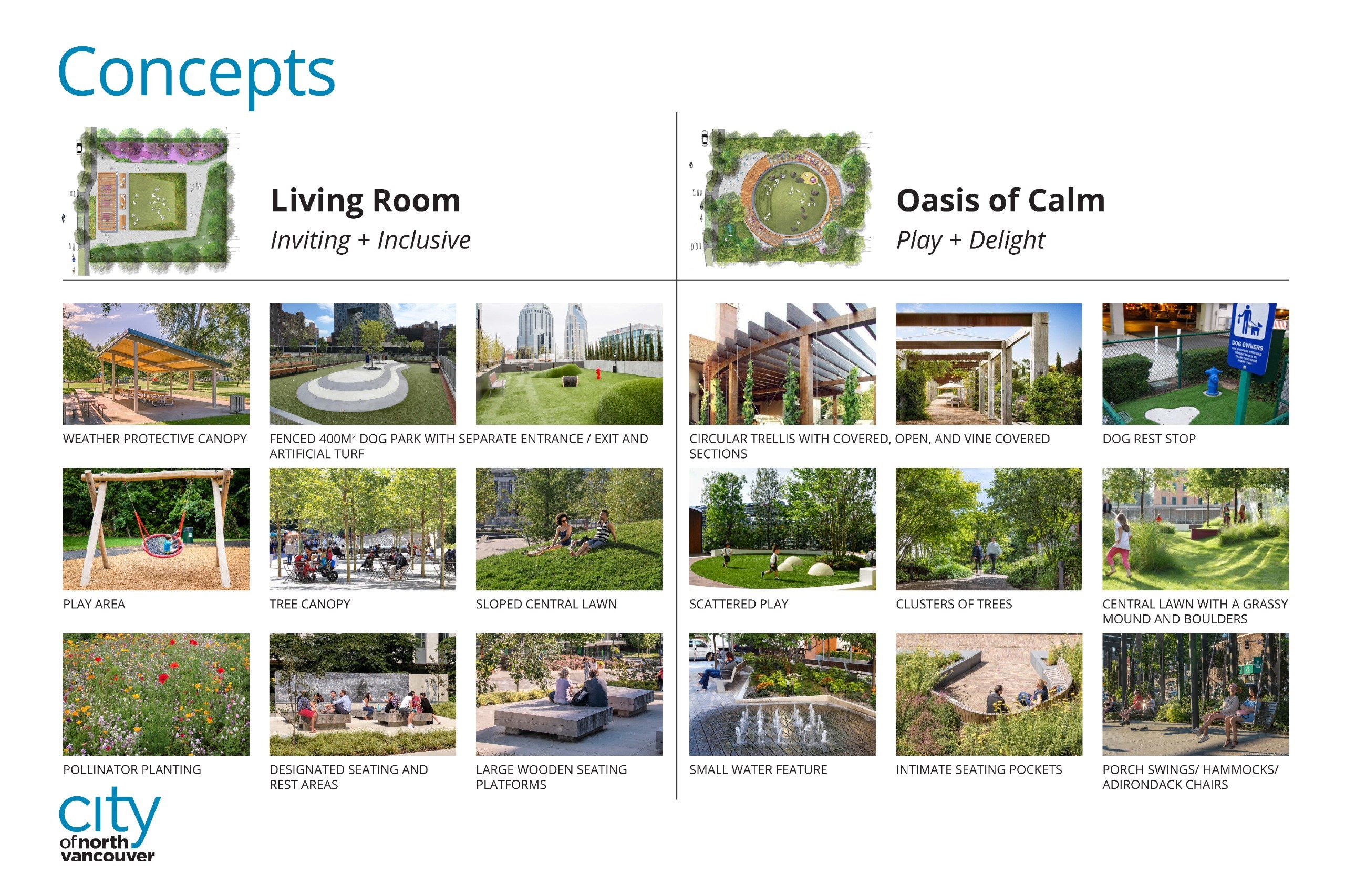 In 2020, the City of North Vancouver conducted community engagement for a brand new park at 1600 Eastern Avenue. Engagement included two different phases. First, in September of that year, we asked residents to share their ideas for the new park. Then, in November and December, members of the public provided their comments and feedback about design concepts for the park. To read more about the engagement, you can download the Phase 1 and Phase 2 summaries.