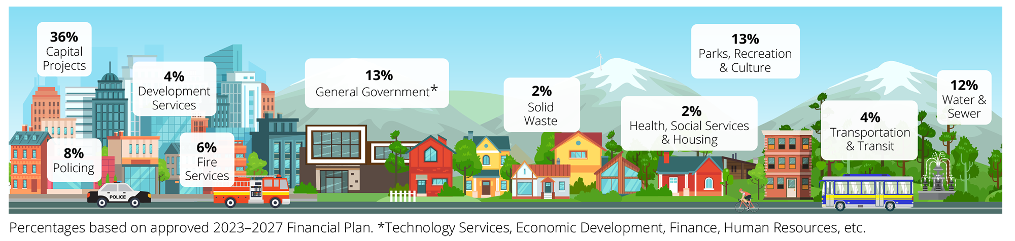 Each year, the City develops a balanced budget that governs how much it needs to spend to provide services for that year and how much revenue it will need to fund those services. The annual budget is part of the City’s 5-year Financial Plan that forecasts future budgeting to ensure accountability and service delivery to taxpayers. The plan considers external economic opportunities and pressures and the long-term vision for the City, balanced with the need to provide the essential services that residents rely on every day.