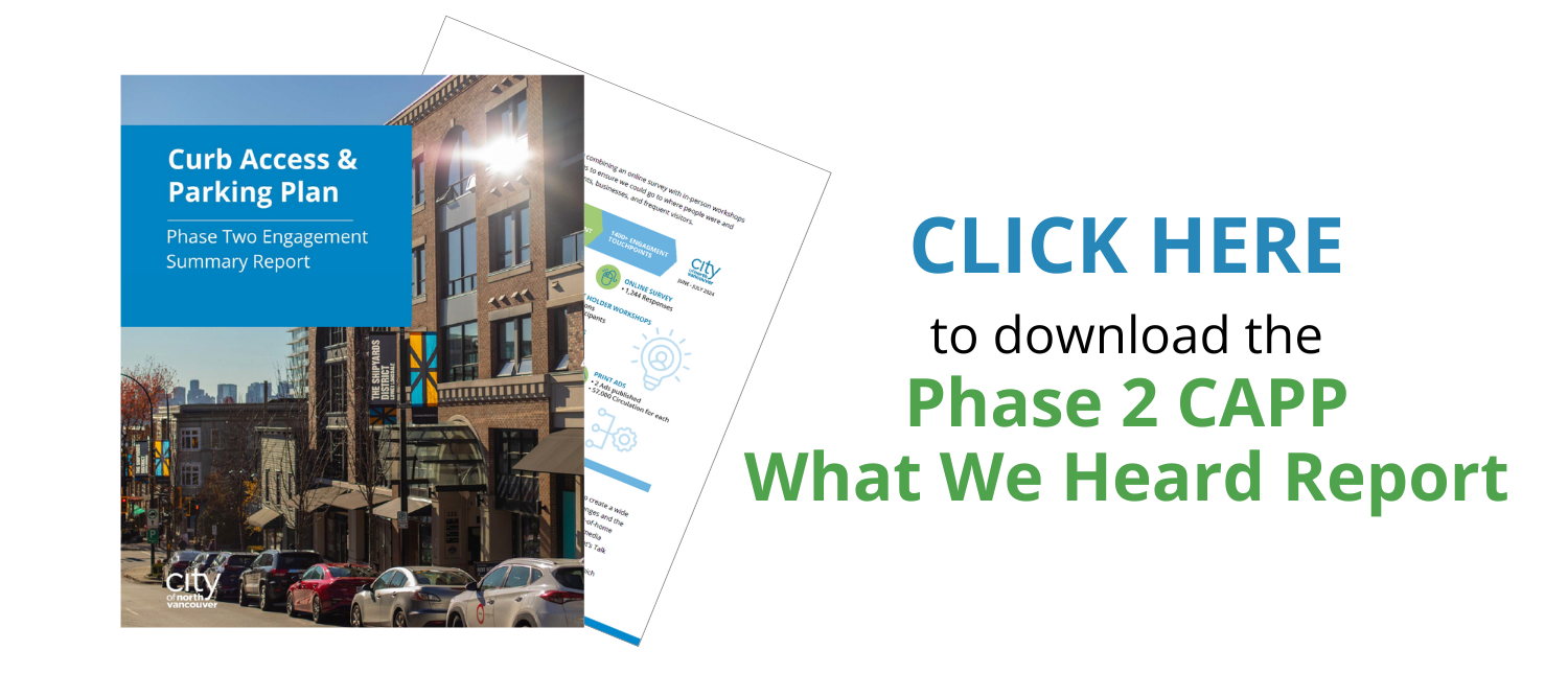 The City of North Vancouver has developed a Curb Access & Parking Plan to improve the reliability of accessing our curb space, while addressing the changing demands of the curb we’ve seen in recent years. This Plan will help residents, visitors, and businesses meet a wider range of needs on our curbs, today and into the future.