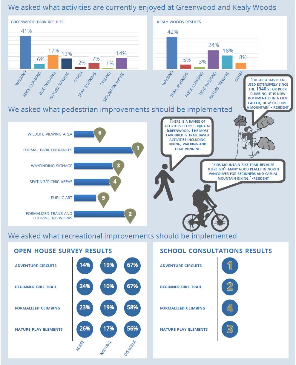 The public consultation involved an open house on January 28th, 2 workshops with school aged children in early March, a build your own park activity as part of the annual Kids in the Hall event, and meetings with stakeholder groups. See complete sumary
