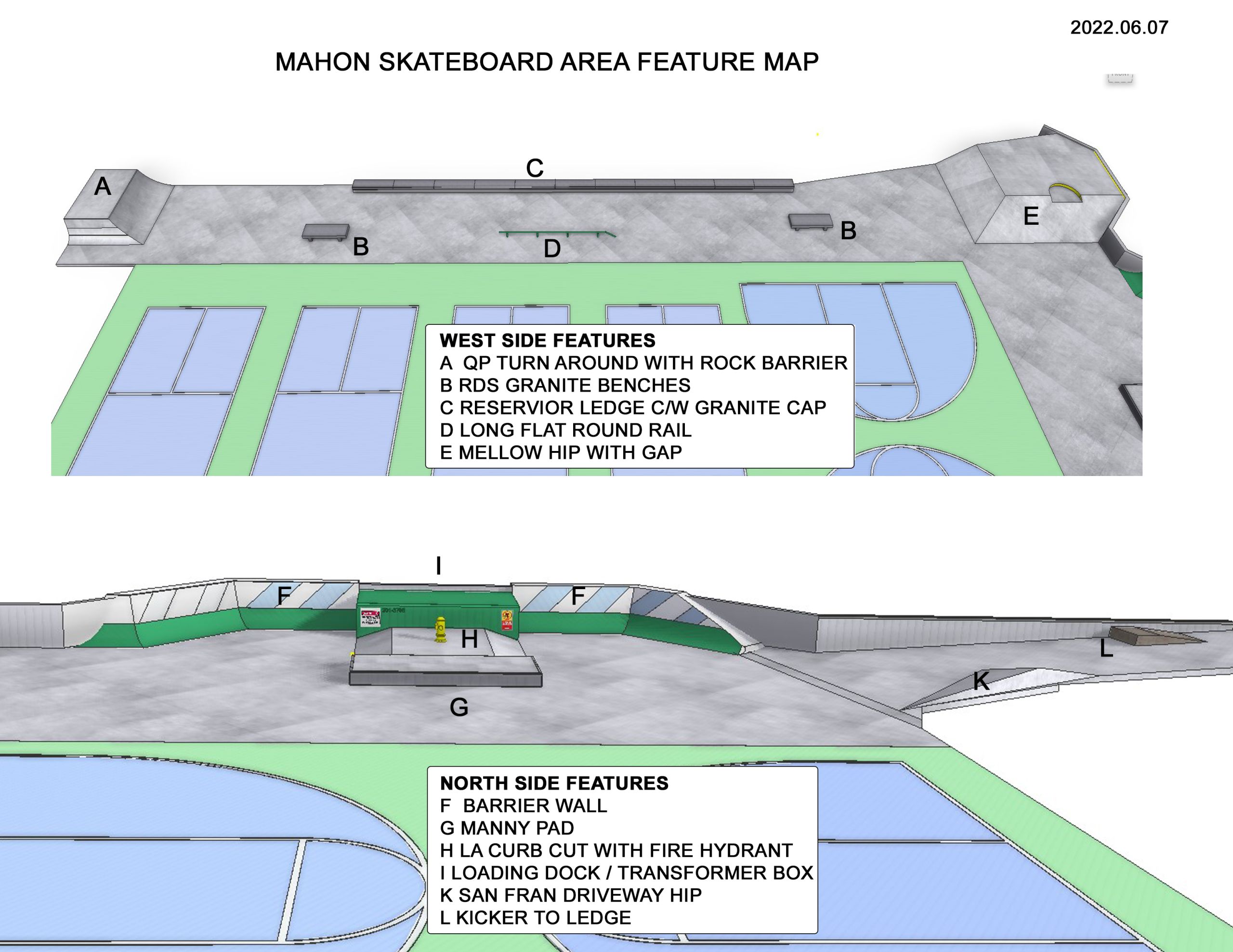 Additional park amenities like a new water fountain, fencing, and storage for maintenance tools will also be delivered as part of this project. View the Mahon Skate Park Design Gallery for more info.